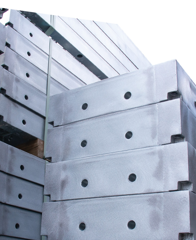 Regular cleaning and maintenance is essential for the long-term preservation of the formwork material and high-quality results. We offer renovation of all common formwork systems. It includes: Removal of plates, cleaning of profiles with up to 1,000 bar water pressure and removal of concrete residues. Covering of the frames with the desired plate (phenolic resin, plastic coating, Alkus) and subsequent sealing with high-quality joint sealant.