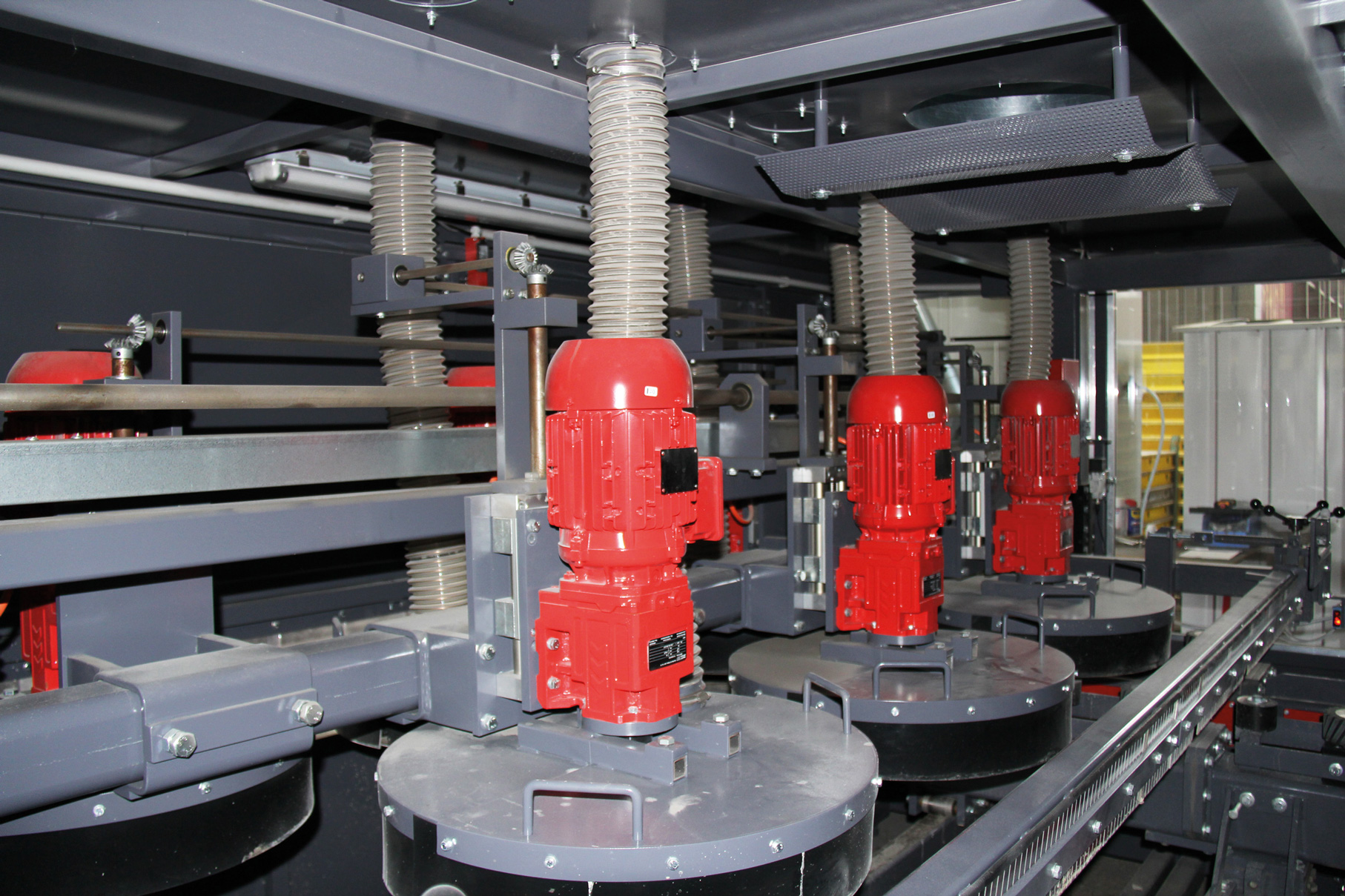 De chaque côté, deux paires de brosses nettoient simultanément les bords des cadres de coffrage.