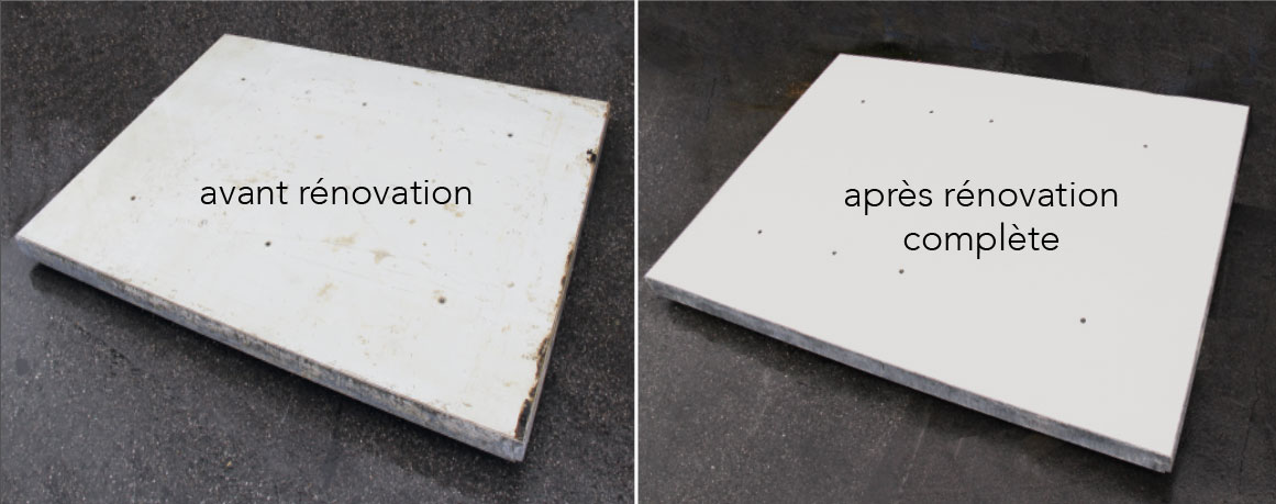 Un nettoyage et un entretien réguliers sont indispensables pour préserver durablement le matériel de coffrage et obtenir des résultats de qualité. Nous vous proposons un service de rénovation de tous les systèmes de coffrage courants. Celui-ci comprend: Retrait des panneaux, nettoyage des surfaces avec une pression d’eau allant jusqu'à 1’000 bar pour l'élimination des résidus de béton. Revêtement des cadres avec un panneau de votre choix (résine phénolique, revêtement synthé-tique, Alkus), puis scellement avec un matériau d’étanchéité pour joints de haute qualité.